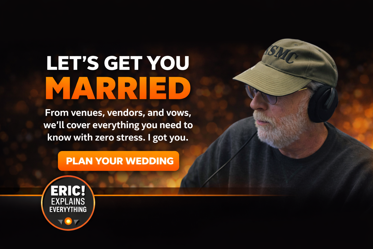 "We were completely overwhelmed planning our wedding until we heard Eric. The way he breaks everything down just makes sense. He saved us from making some really expensive mistakes."
